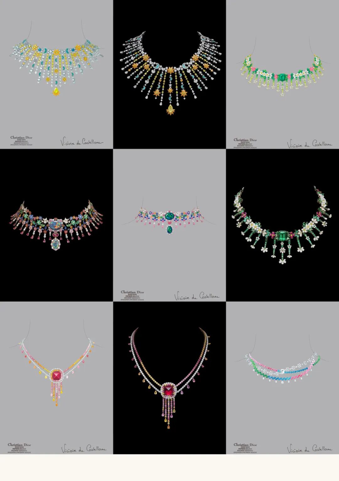 集合系列中重要的项链作品,呈现一组Belle Dior高级珠宝系列项链作品墙。
