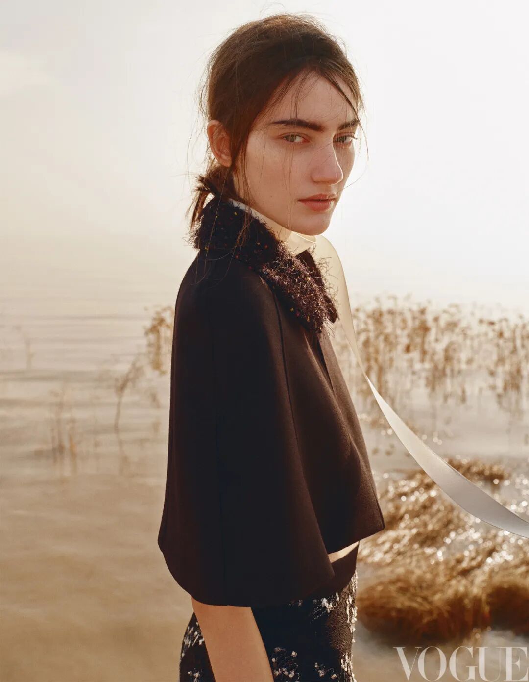 毛领斗篷、蕾丝半身裙 均为Shuting Qiu