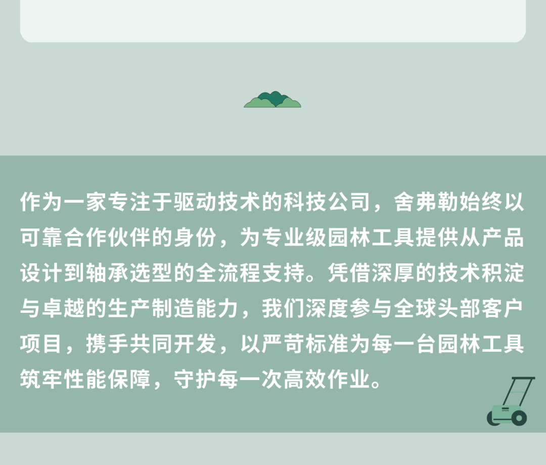 摘要:每一套舍弗勒轴承,都是园林工具持续作业的可靠保障。