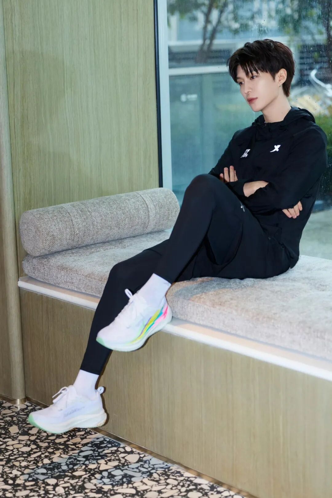范丞丞 All Black 运动系穿搭就令人如沐春风,清爽无比。白色的碳板跑鞋成为点睛之笔,已经可以想象到他在湖边绿道慢跑的场景了!