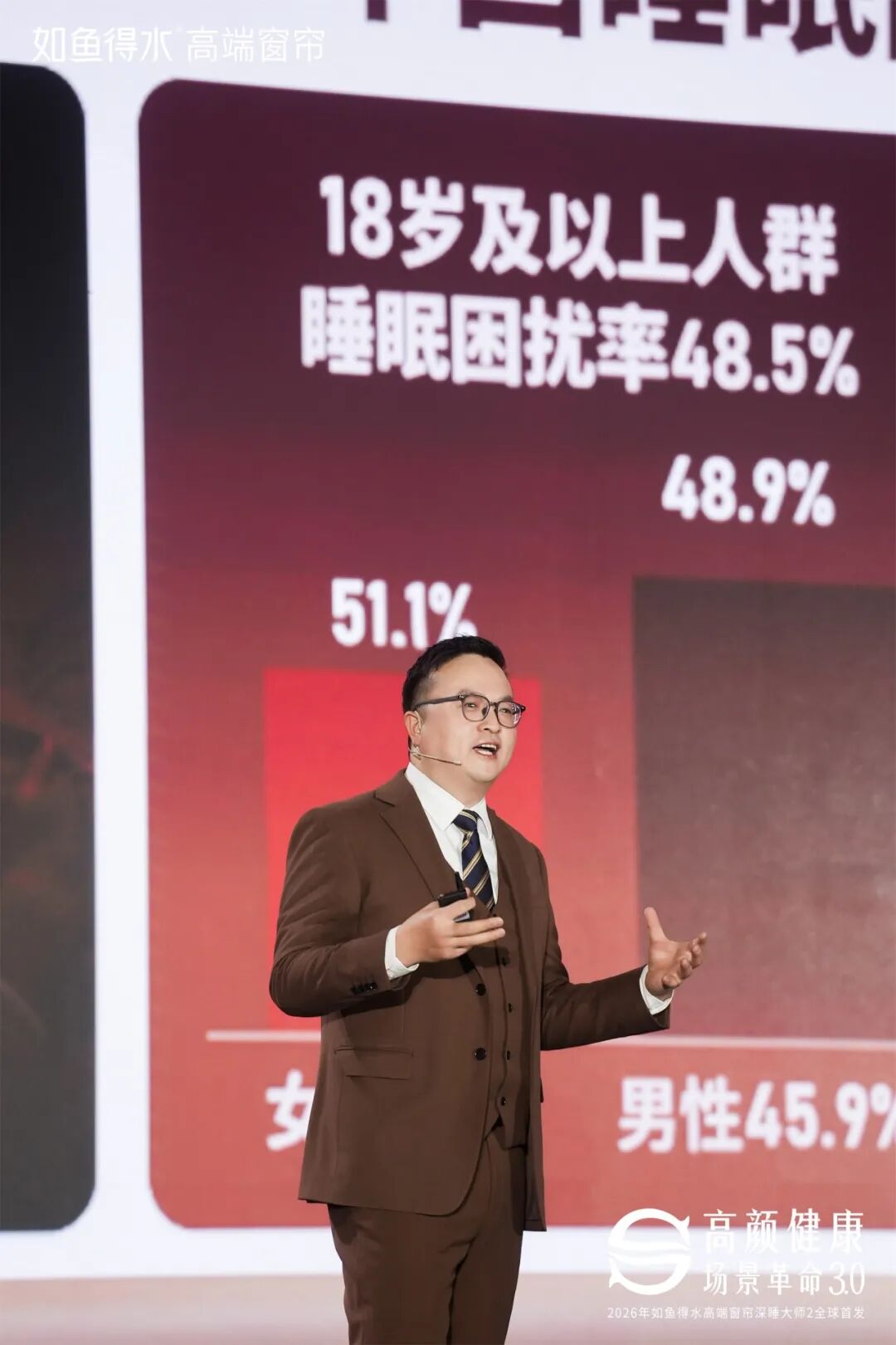 2026年3月19日,如鱼得水高端窗帘以“高颜健康 场景革命3.0”为主题,于杭州盛大举办「深睡大师2」卧室深睡环境一体化解决方案全球首发发布会。