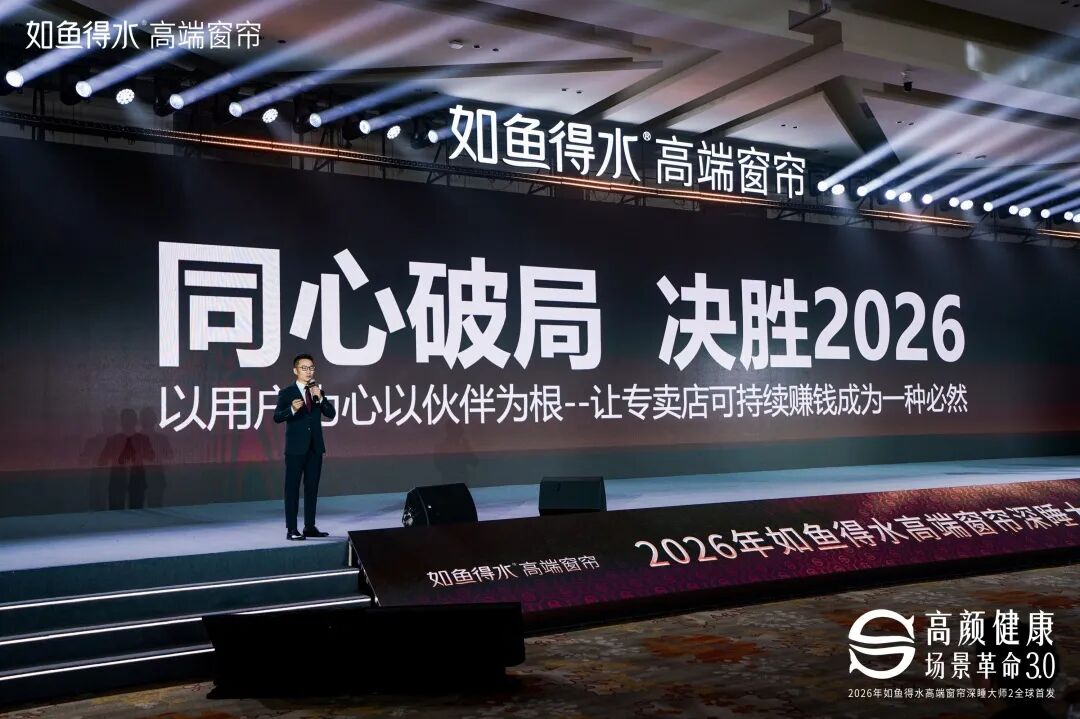会议伊始,如鱼得水高端窗帘董事长陈道贤先生在“同心破局 决胜2026”战略分享中指出:窗帘行业长期停留在表层竞争,却忽视了消费者最深层的诉求——睡个好觉。