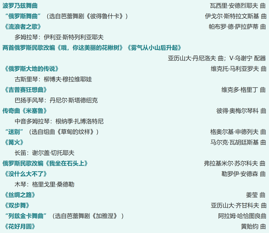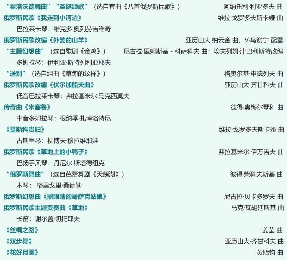 《丝绸之路》与《花好月圆》的熟悉旋律也将在这里同步响起,经由俄罗斯民族乐器奇妙演绎,东方意蕴将为这场节奏之旅增添一抹温暖的底色。