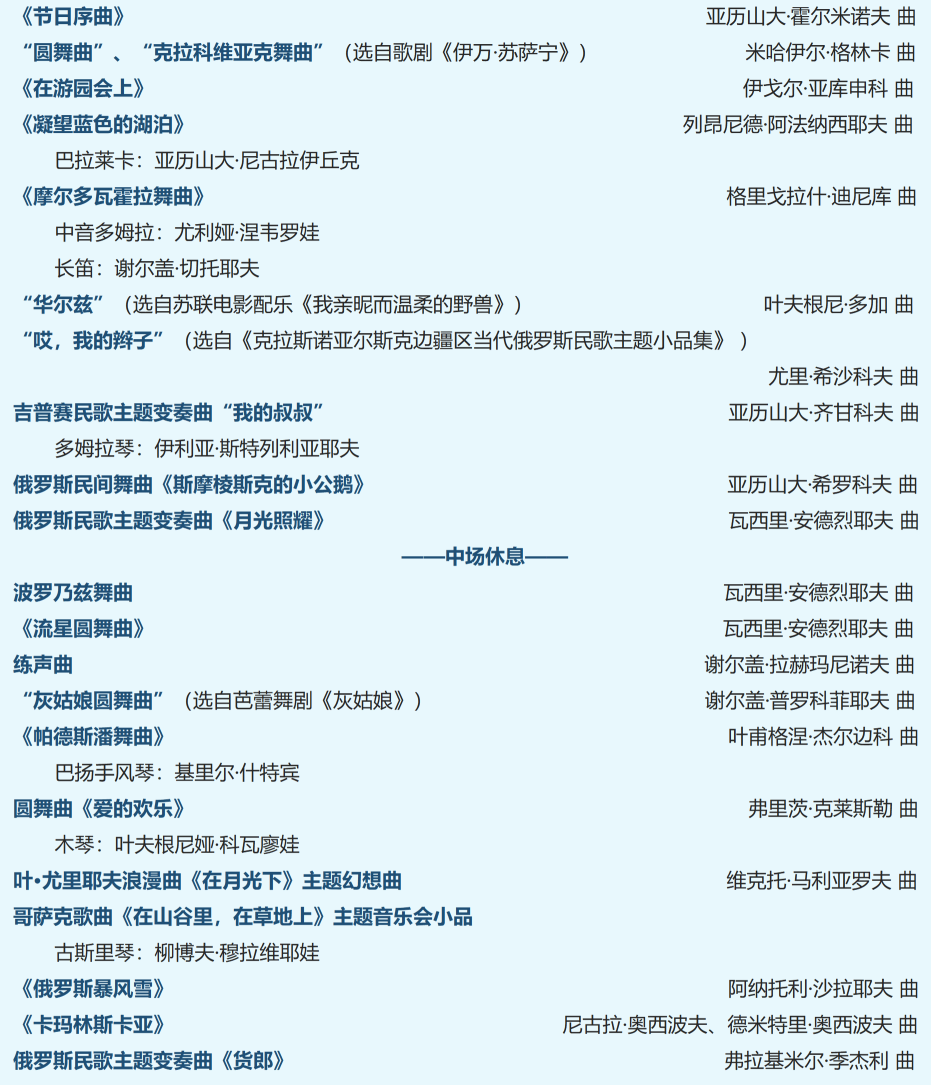 本场音乐会以跃动的节奏与舞蹈张力为核心,带您领略俄罗斯民族音乐从古典到现代的多元风貌。