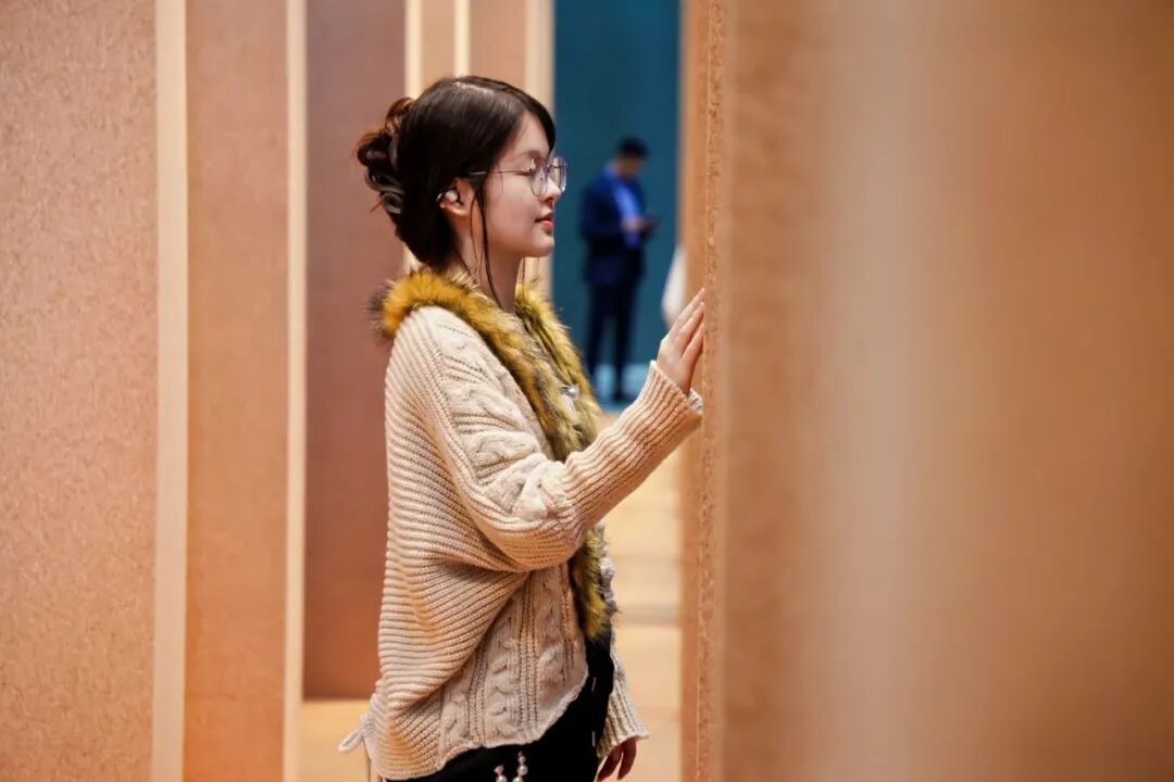 本次 FRAME SHOW 打破传统展览的单向展示逻辑,以“垂直森林”为叙事原型,把城市自然生态搬进室内场域,让遥不可及的城市森林转化为可体验、可融入的日常场景。材料层面,展览坚持低碳环保原则,全域选用软木、天然木材与可循环材料,从源头践行可持续设计理念;空间层面采用开放动线规划,搭配沉浸式场景营造,摒弃生硬的理念灌输,让观众在行走、触摸与感受中,直观理解“可持续”并非抽象概念,而是可落地、可日常的生活本然状态。
