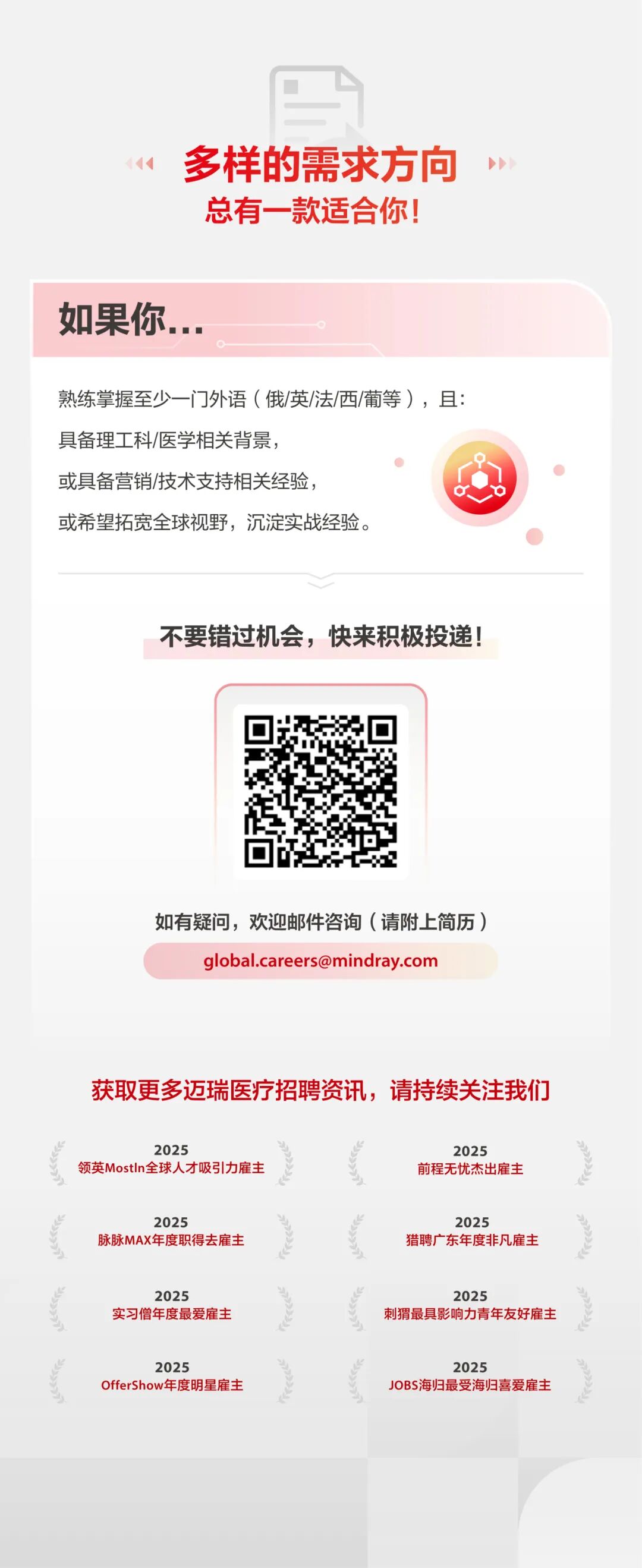本文内容来源于公众号: 迈瑞招聘 ,请扫码查看原文。