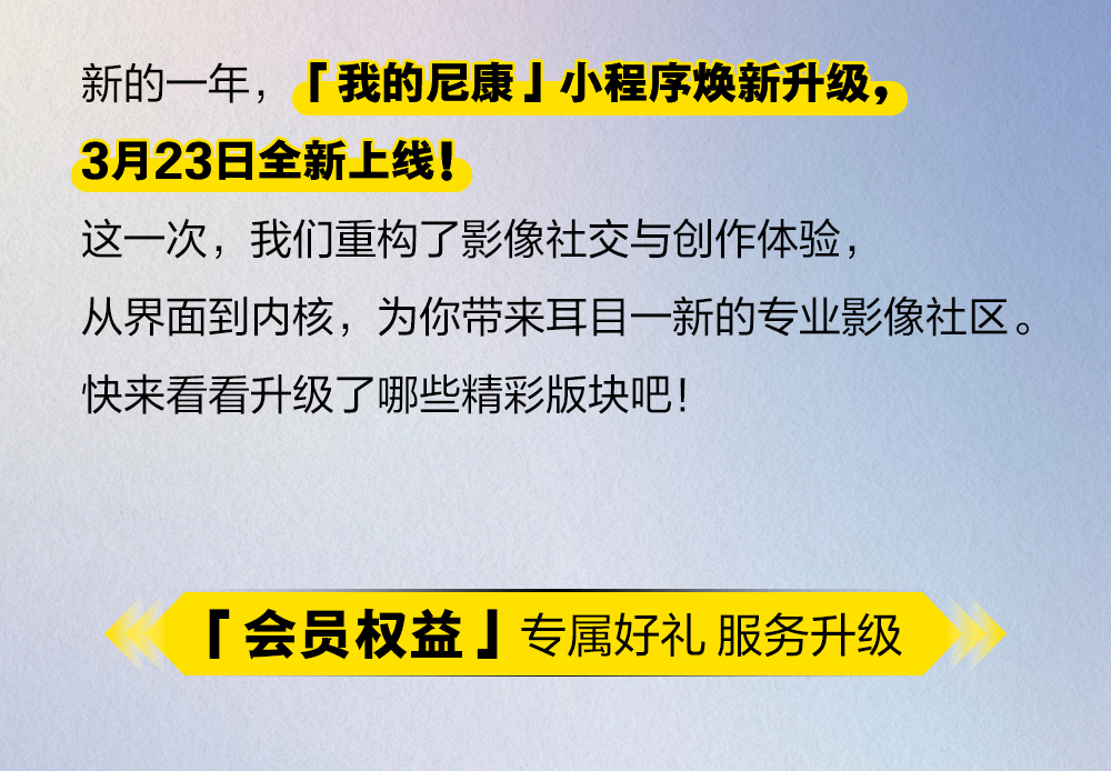 摘要:「我的尼康」小程序焕新升级,于3月23日正式上线!即刻进入小程序,一起探索升级后的精彩版块吧!