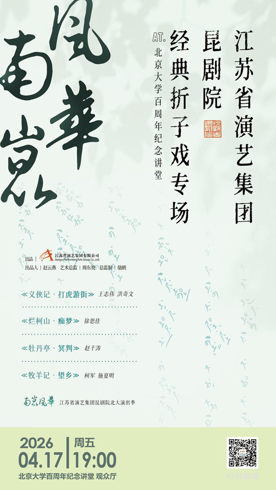 江苏省演艺集团昆剧院经典折子戏专场《南昆风华》,精选生、旦、净、末、丑各行当名段,一夜间看尽昆腔百态,听遍六百年风雅。