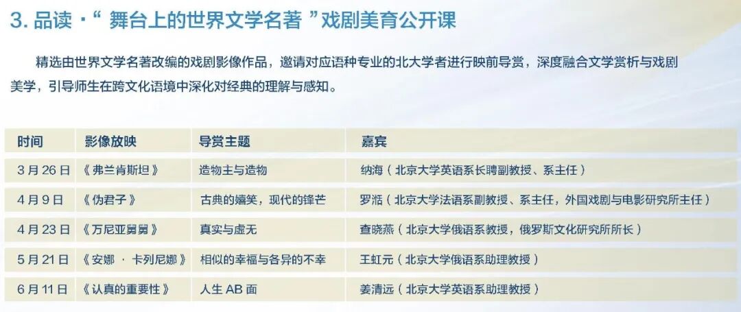 戏剧美育公开课、名家讲座、艺术家工坊等板块