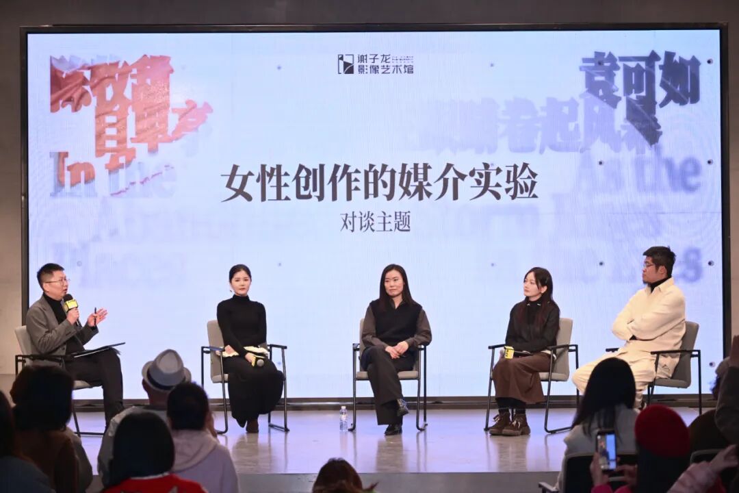 随后举行的开幕对谈由盛迪杰主持,陈牧甜、张营营、袁可如、王溪四位嘉宾共同参与,围绕“女性创作的媒介实验”展开深度交流。艺术家分享了各自的创作动机与文化思考,策展人则从展览策划的角度阐释了对本次展览的立意。