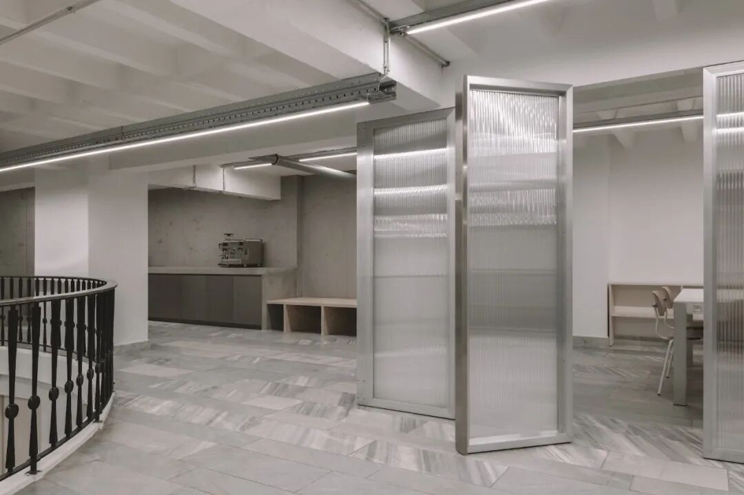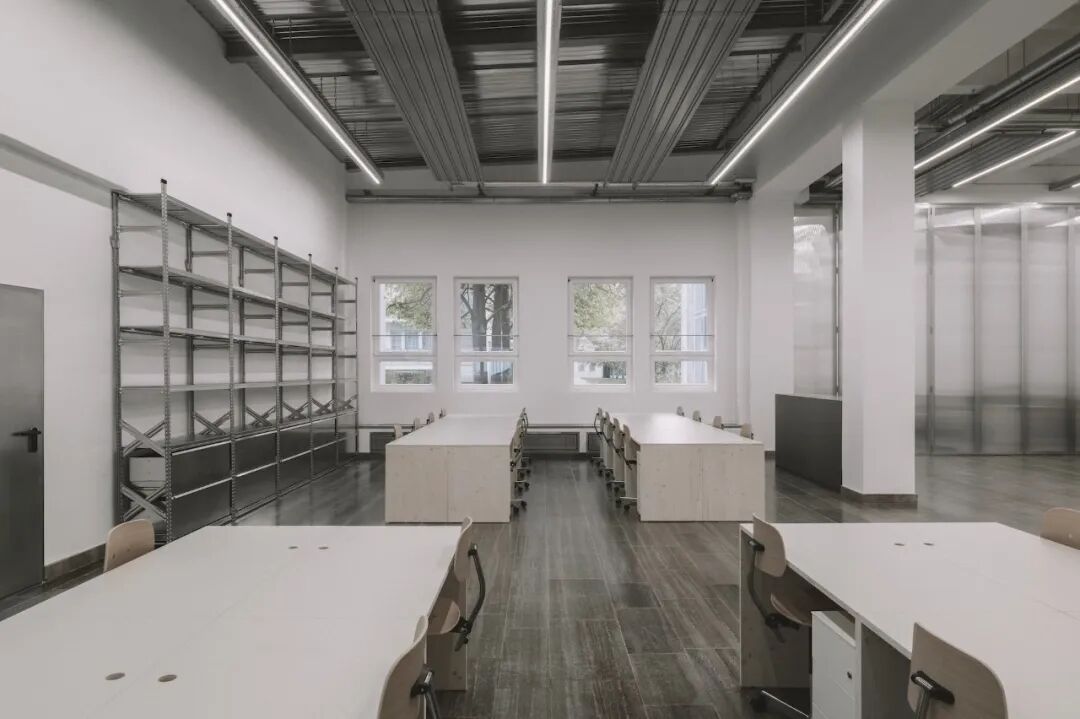 Gonzalez Haase AAS 设计的柏林 Aeyde 办公空间,则呈现出一种更极致的极简主义。内部空间高度规整,对齐、重复与统一感贯穿整个环境。这种高度的秩序感常与专注力挂钩,却未必能真正带来专注。理论上,减少干扰有助于集中注意力,但实际中,它也可能带来另一种压力。