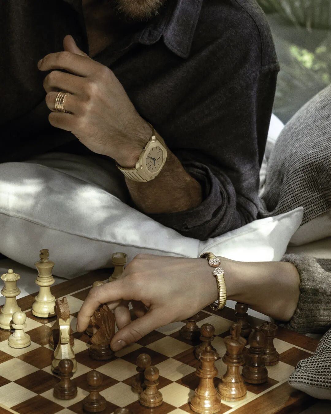时间来到春日,当自然万物复苏,珠宝的叙事也转向“自然共生”。尚美在2026年推出Bee de Chaumet系列新作,以品牌经典的蜜蜂图腾,演绎抽象与具象之间的精妙平衡。白金钻石与蓝宝石碰撞出尚美标志性的蓝调美学,Toi et Moi戒指与耳环上一大一小两只蜜蜂打破对称束缚,轻盈停驻于指尖耳畔,诠释生而闪耀的本真姿态。如果说尚美以自然生灵书写轻盈爱意,那么宝格丽则以建筑轮廓定义爱的力量感。宝格丽B.zero1系列四环戒指,以建筑感张力成为跨越时代的情感符号。18K黄金与白18K金的碰撞,将硬朗结构化为温柔联结;经典Tubogas手镯以柔韧线条回归,光影流转间,诉说柔韧而坚定的永恒。