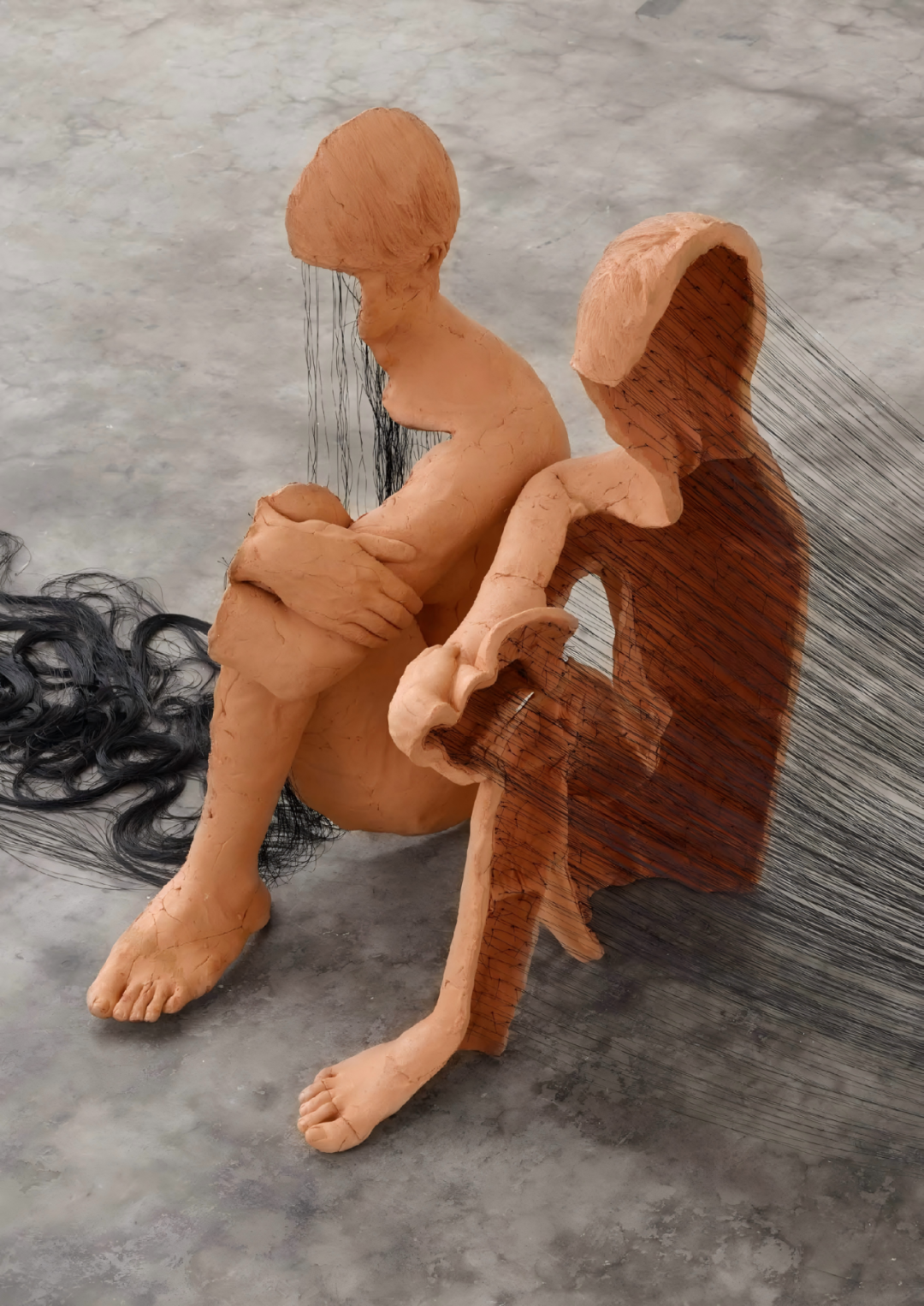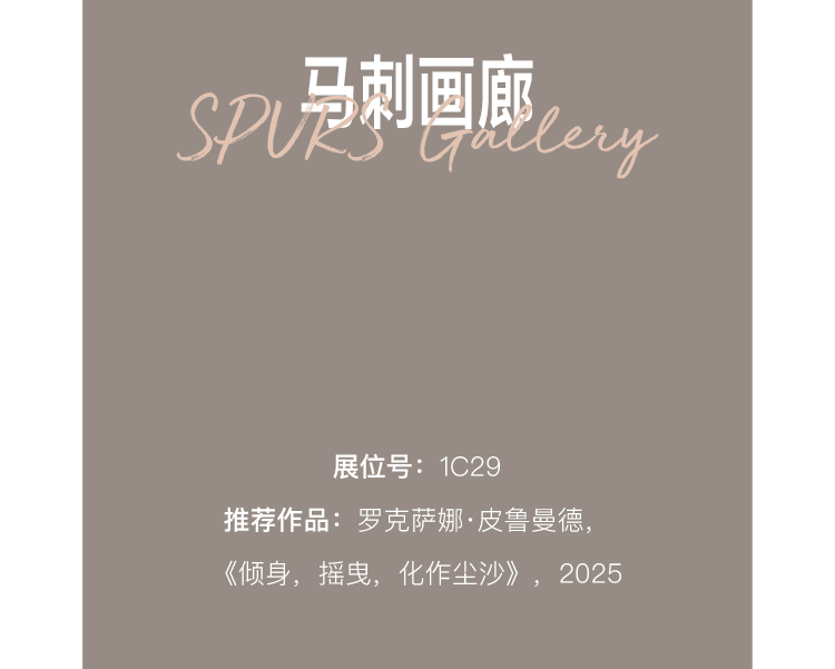 《倾身,摇曳,化作尘沙》是罗克萨娜・皮鲁曼德2025年的创作,以陶瓷、线、织物与马达为创作材质,是艺术家对材料及物质转化探索的重要延伸。这件动态装置作品延续了艺术家的核心创作脉络,将个人经历融入装置系统,借由作品的动态表现,以及艺术家、作品与观众之间的互动,诠释出关于转化、衰败与运动的可能性的艺术思考。
