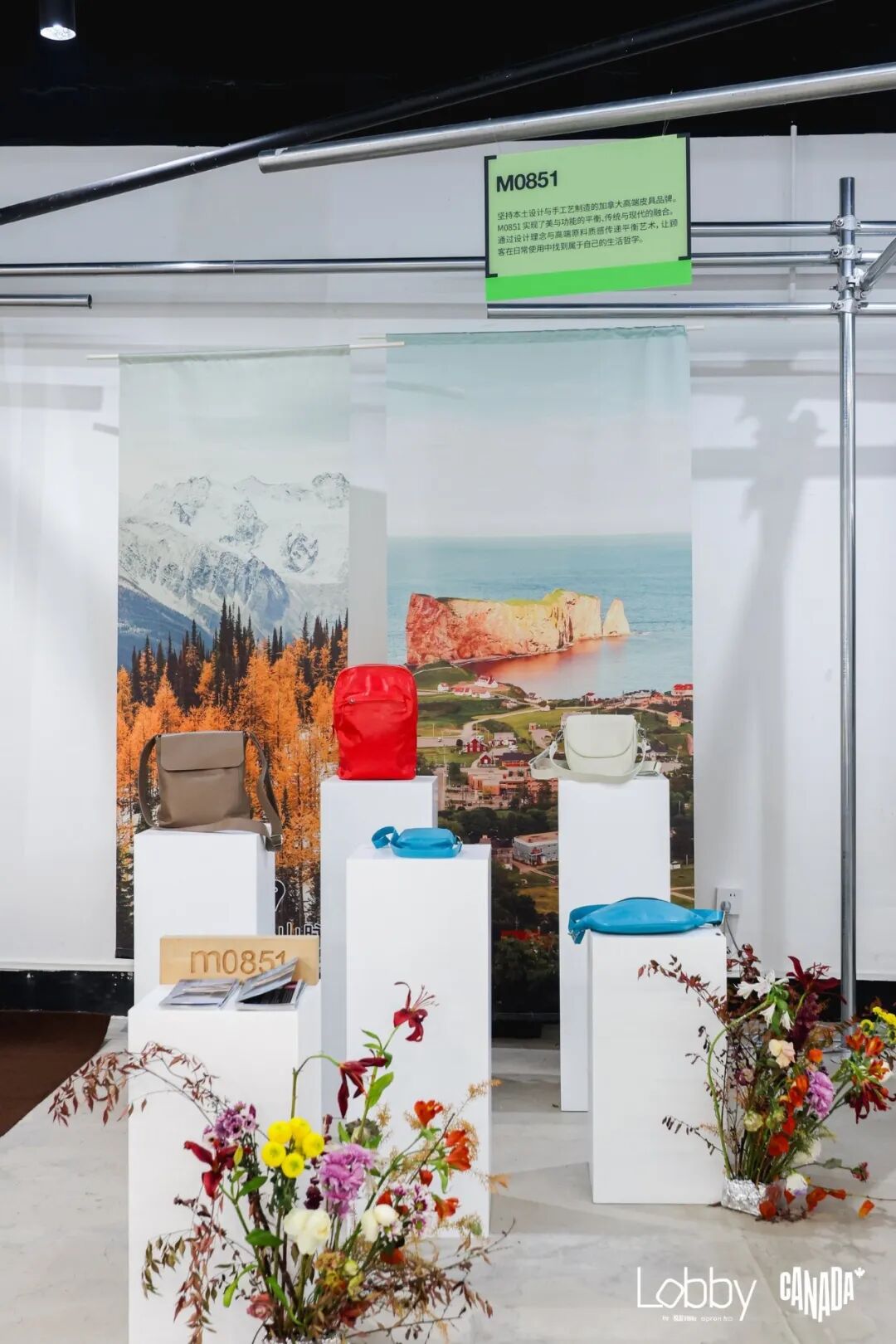展示中的加拿大户外背包和高端皮具。现场展品皆可直接购买。