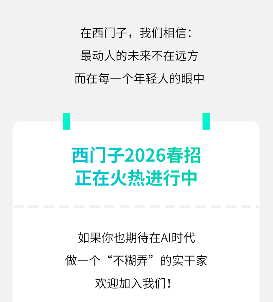 文章内容来源于公众号:西门子招聘,点此可查看原文,内容版权归相关企业所有,本网站仅供交流学习。若涉及版权问题或存在侵权情况,请及时与我们联系,我们将第一时间进行删除处理。