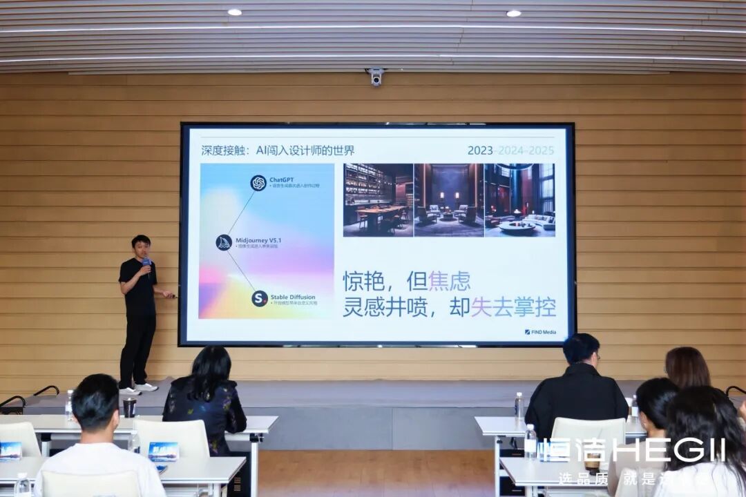 JetLee围绕《AI设计应用趋势》展开分享,介绍了人工智能在设计行业中的最新应用。他提到,AI正从“可用”走向“可控”,在空间效果生成、材质替换、方案推演与视觉表达等方面,正成为设计师越来越高效的辅助工具。