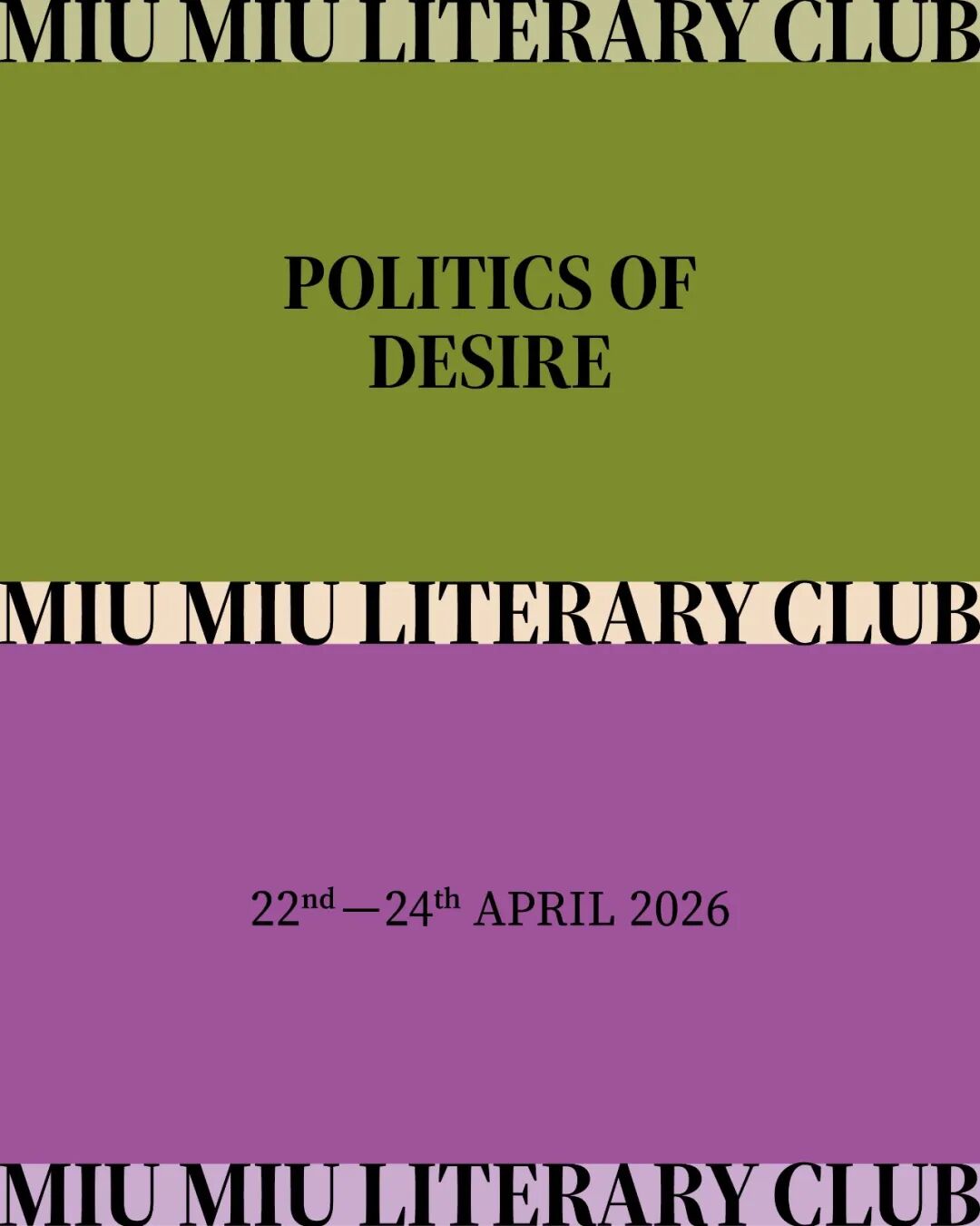 Miu Miu 推出 2026 年度Literary Club(文学俱乐部)——“欲望的政治”(Politics of Desire)。该活动已迎来第四篇章(2026 米兰站“欲望的政治”、2025米兰及上海站“女性成长启示”、2024米兰站“生活书写”),本次将通过两位杰出作家:诺贝尔文学奖得主、法国作家Annie Ernaux与加纳作家、学者、前教育部部长Ama Ata Aidoo的作品,深入探讨性、同意与欲望的主题。