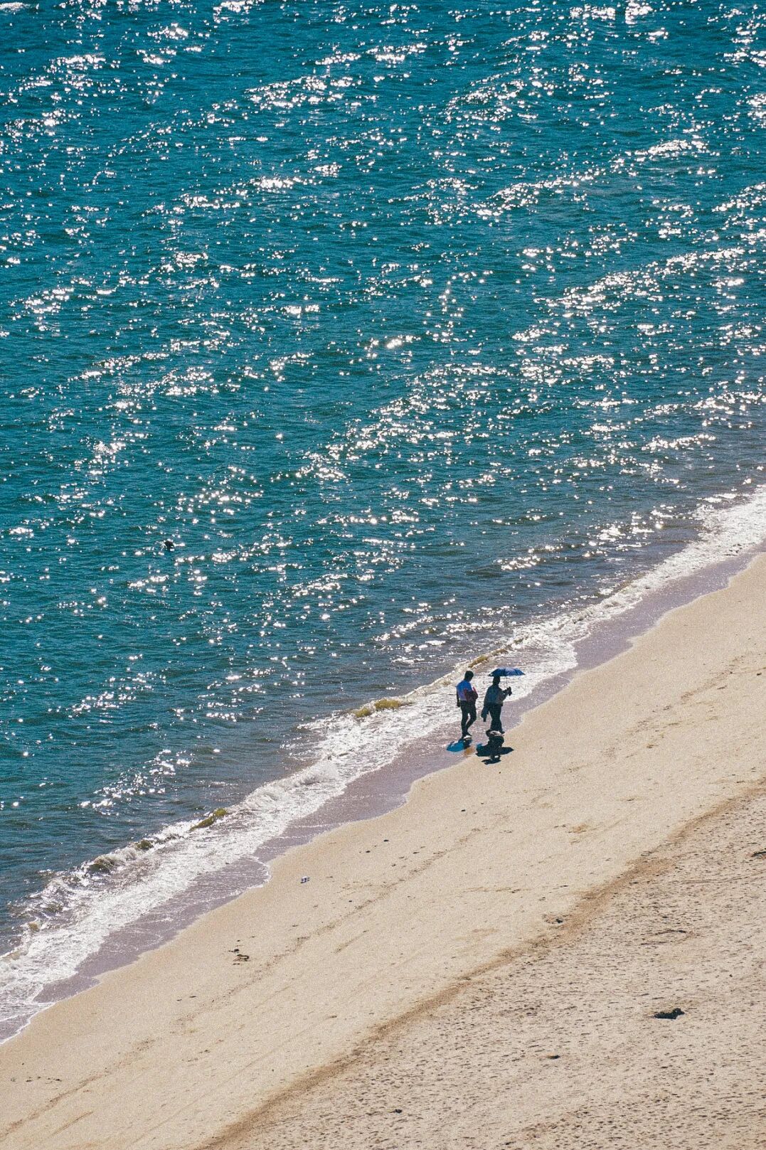 地峡一侧是平海湾。这里被半岛与山体挡住了来自外海的大部分风浪,水流在进入湾内之后逐渐变得温和。长时间的沉积与打磨,让沙粒变得格外细腻,踩上去几乎没有粗糙感;而另一侧的红海湾则完全不同。