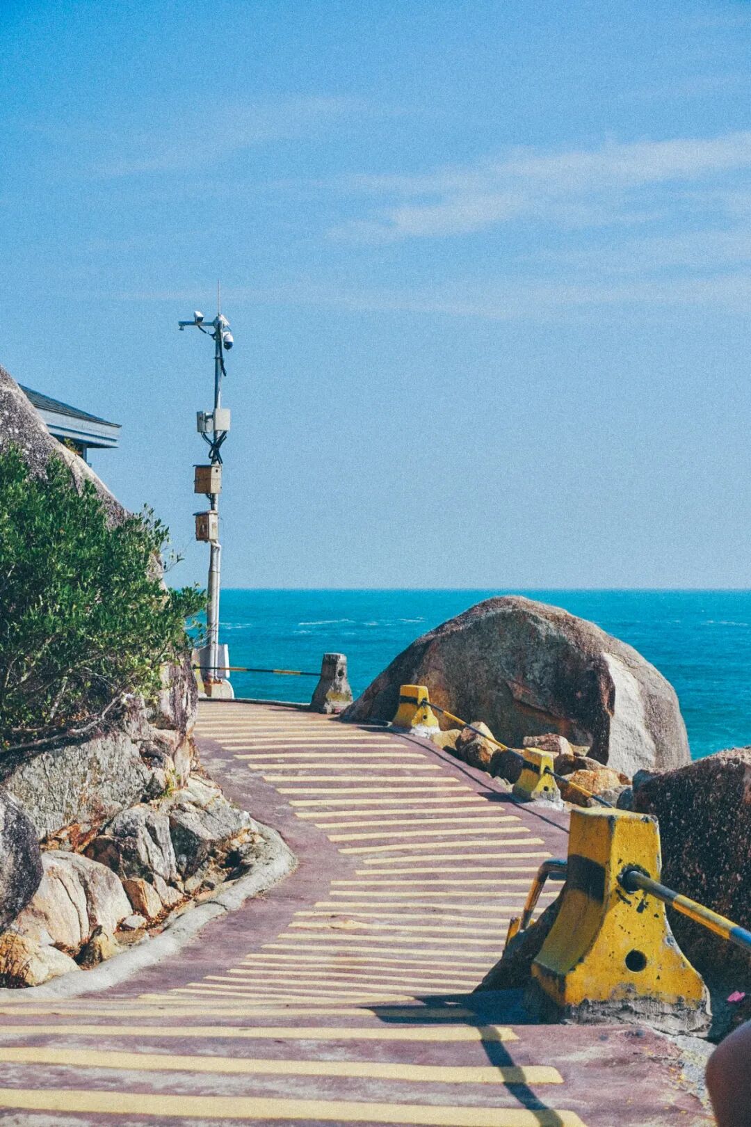这边直接面向南中国海开阔水域,风与洋流几乎没有任何遮挡。浪从远处一层层推来,拍打在岸边的礁石与陡坡上,水声明显比另一侧更响。沙滩之间夹杂着黑色岩石,海水颜色也更深,带着一点略显粗粝的力量感。
