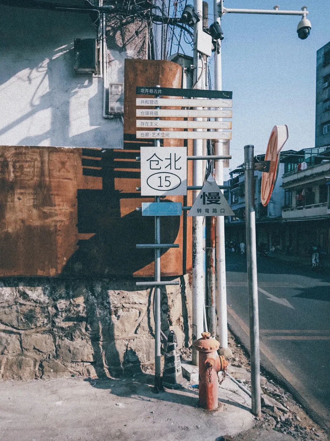 几条小路在建筑之间慢慢延伸,墙面留下几十年的风化痕迹,植物在角落里生长。这里没有特别密集的商业,却营造出了一个人们可以发呆放空的空间:一些工作室、一两家小店,还有不少还没被使用的院落。它和周围居民楼融在一起,生活气息自然地流进来。很多人会在这里待一下午,喝杯咖啡,散散步,像在城市里临时成为一个“岛民”。