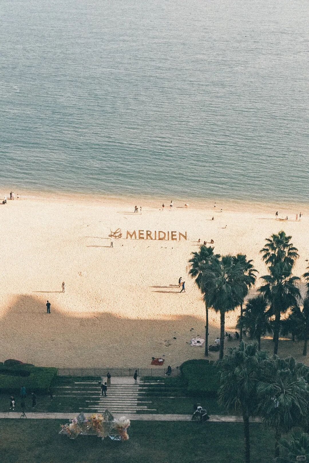 酒店就在海边,建筑面朝大海开来,从大堂到泳池再到海滩,空间之间过渡得很自然。很多人第一次住进来都会有一种微妙的错觉:这里看起来不像国内常见的海边度假区,反而有点接近南法那种轻松的海岸气氛。海水的颜色很干净,沙滩也比较宽,尤其早晨去吃早餐的时候,海面还没完全热闹起来,远处的水色会显得特别柔和。