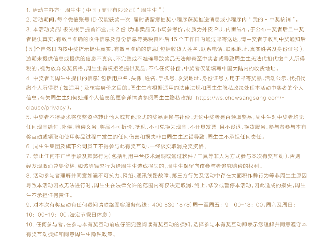 文章内容来源于公众号:周生生网上珠宝店,点此可查看原文,内容版权归相关企业所有,本网站仅供交流学习。若涉及版权问题或存在侵权情况,请及时与我们联系,我们将第一时间进行删除处理。