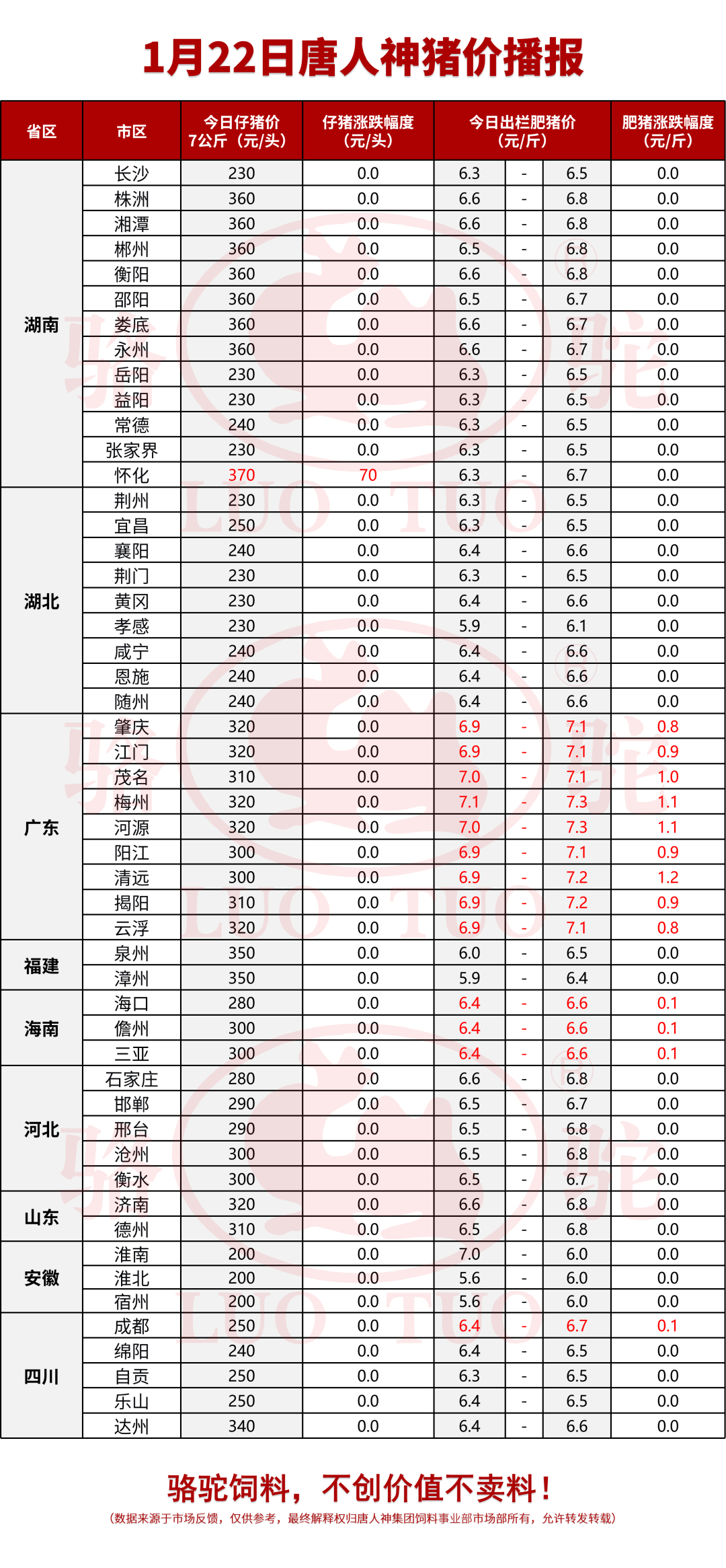 摘要:唐人神今日猪价播报——1月22日