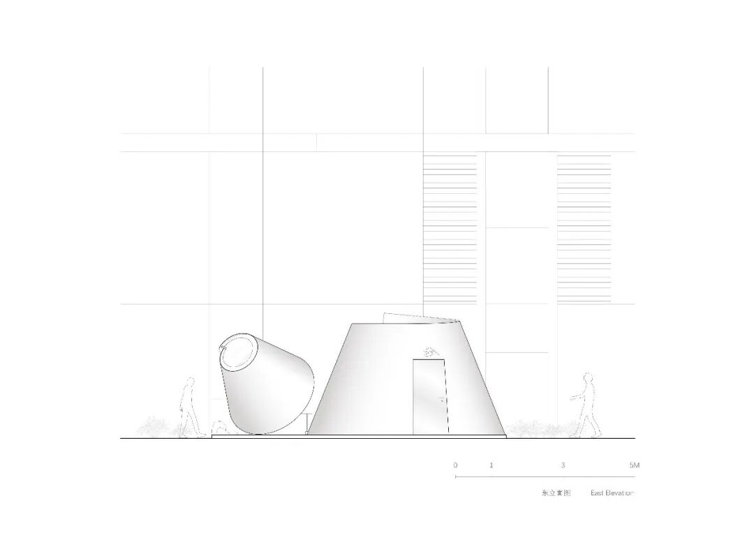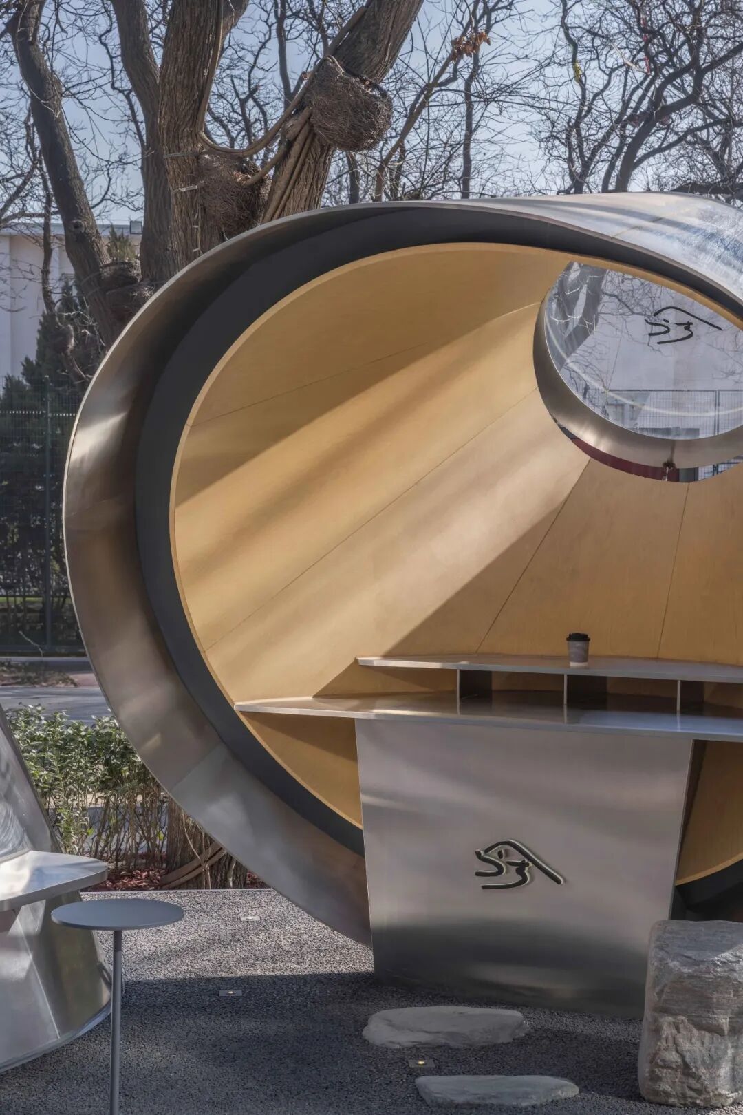 “大杯”以覆扣的姿态实现内向围合,构建出咖啡冲煮与体验的核心空间。© 金伟琦