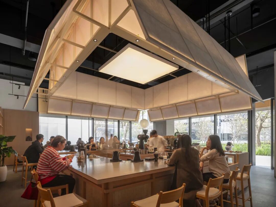 深圳店以内外“双檐”回应东亚传统坡屋顶建筑,北京店则以左右“双盏”将咖啡滤杯的形制融换为可被体验的空间语言,在平衡品牌辨识度的同时尊重在地语境,让咖啡文化的匠人精神、社群温度,与中国都市的生活本貌、场地特质自然相融。