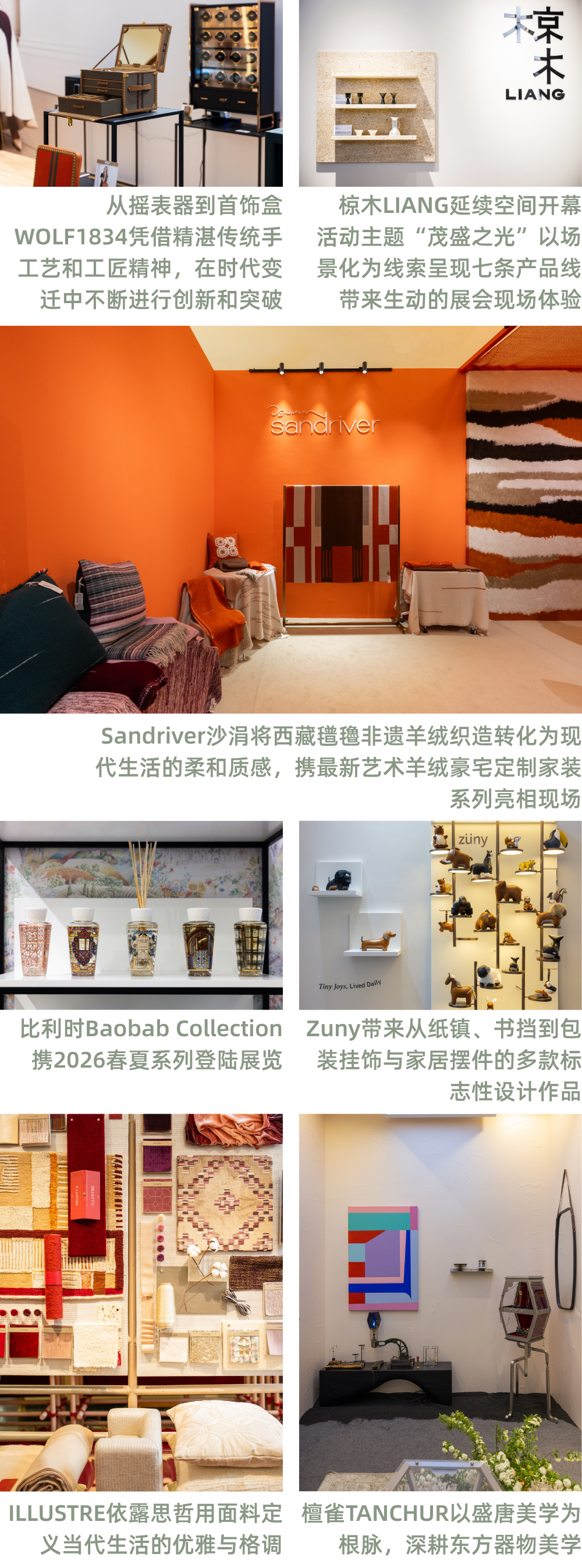 配饰以器物、织物、艺术摆件等多元形式,让设计融入生活细节。在生活方式与配饰设计展区,丹麦品牌Reflections Copenhagen反射哥本哈根、比利时Baobab Collection、WOLF1834、Sandriver沙涓、椋木LIANG等品牌以匠心呈现,勾勒有质感、有温度的当代生活图景。