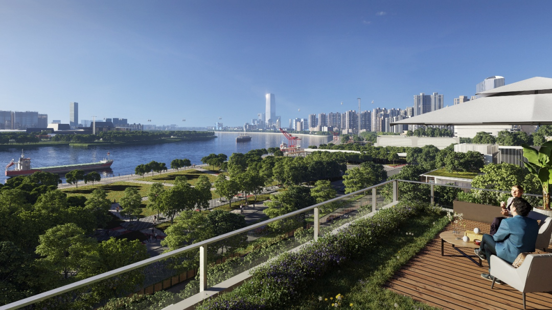项目坐拥1.4公里水岸线,14万平方米滨江公园+40英亩(约16.2万平方米)开敞绿地,打造城市“生态绿肺”, 从办公楼步行片刻即达江岸,为商务人群提供随时可及的散步、慢跑与休憩场域。
