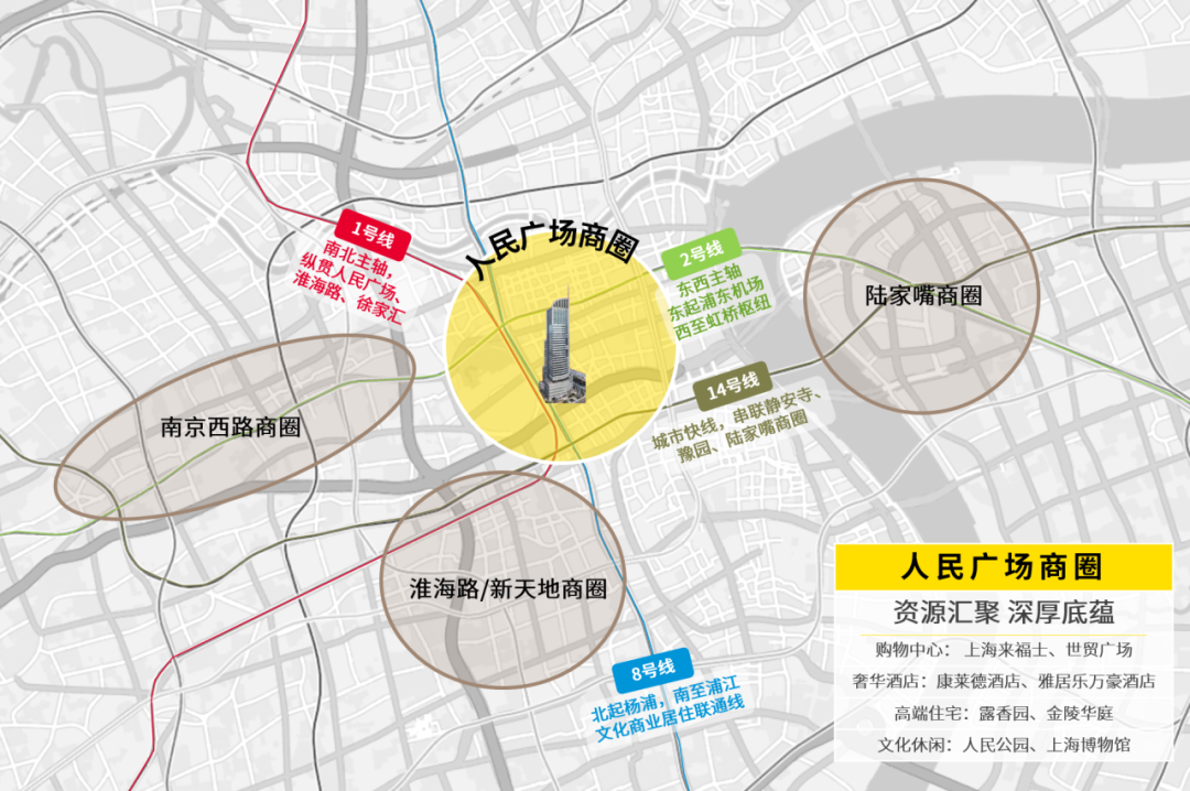 港陆广场坐落于上海老牌核心商圈人民广场核心地段,是集甲级办公楼与商业于一体的综合性商办项目。项目位踞“延安东路高架+西藏中路”立体黄金十字,周边四条地铁线环拥(1/2/8/14号线),交通通达性无与伦比。