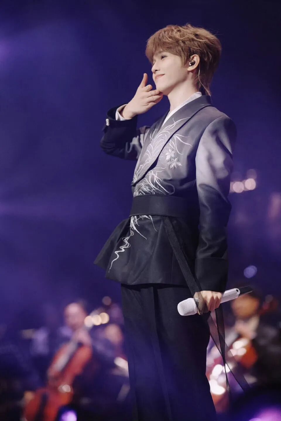 李昊上身的两套都是斜襟收腰款的中式西装套装,通过剪裁以及山水、钩花来展现中式风范,别具一格。
