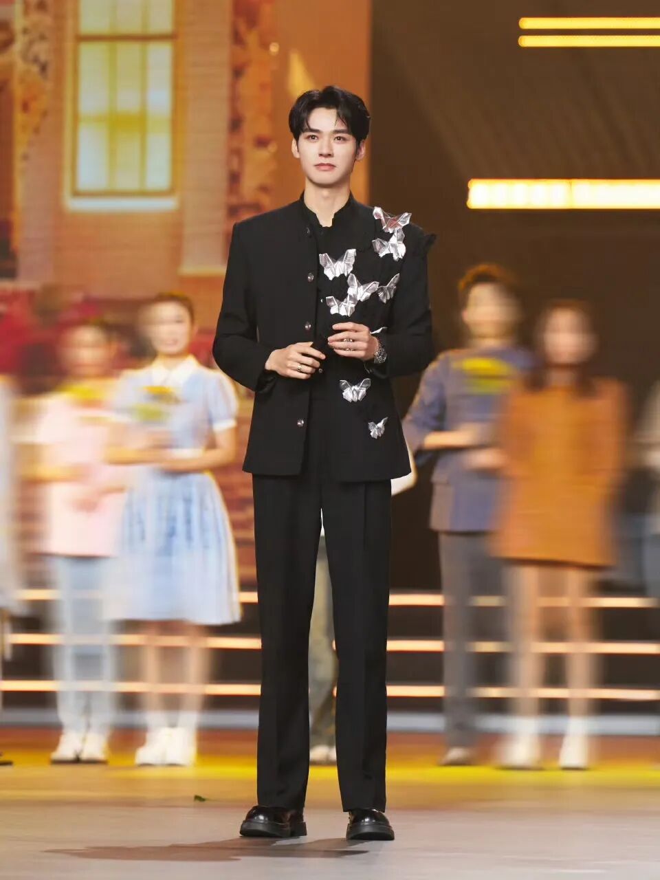 龚俊“古风小生”的气质十分突出,在造型中他也偏爱选择中国风的服装来增添文雅气质,一黑一白,都无法掩盖他的温润格调。在衣体上点缀的的立体珠饰以及蝴蝶都为整体造型增加亮点,简洁大方。