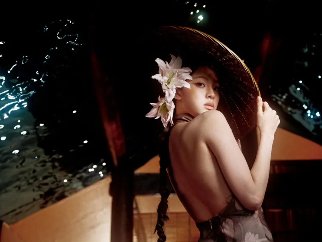 欧阳娜娜则上演“竹林侠女”,来自 Sau Lee 的礼服搭配斗笠,融合中式柔情以及侠气,呈现反差形象。
