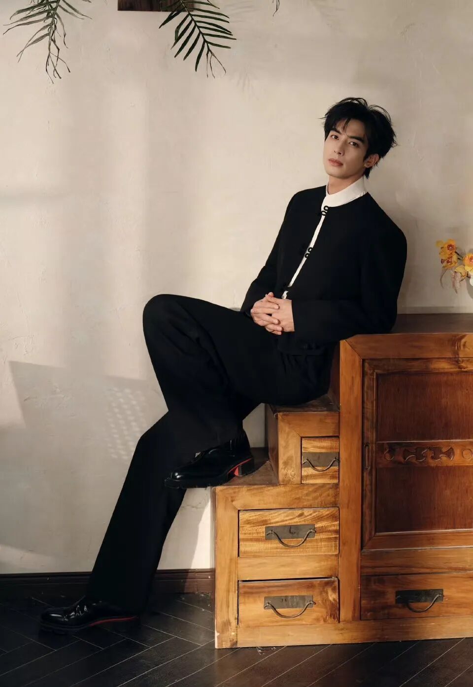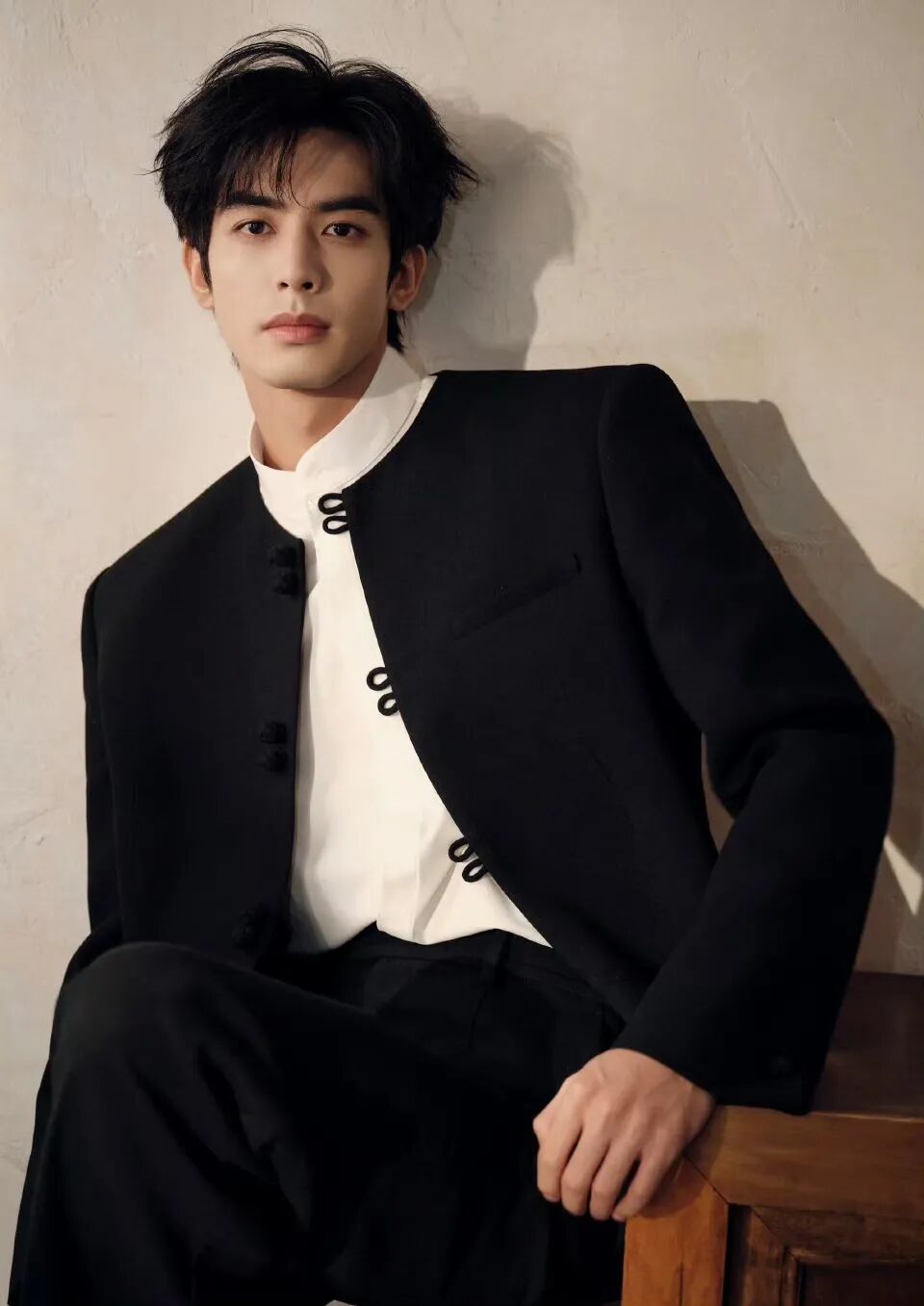 在外套、上衣做文章是“穿美新中式”最便捷的方式!张凌赫就选择这样的方法为穿搭做减法,反而更显文人雅致气息。