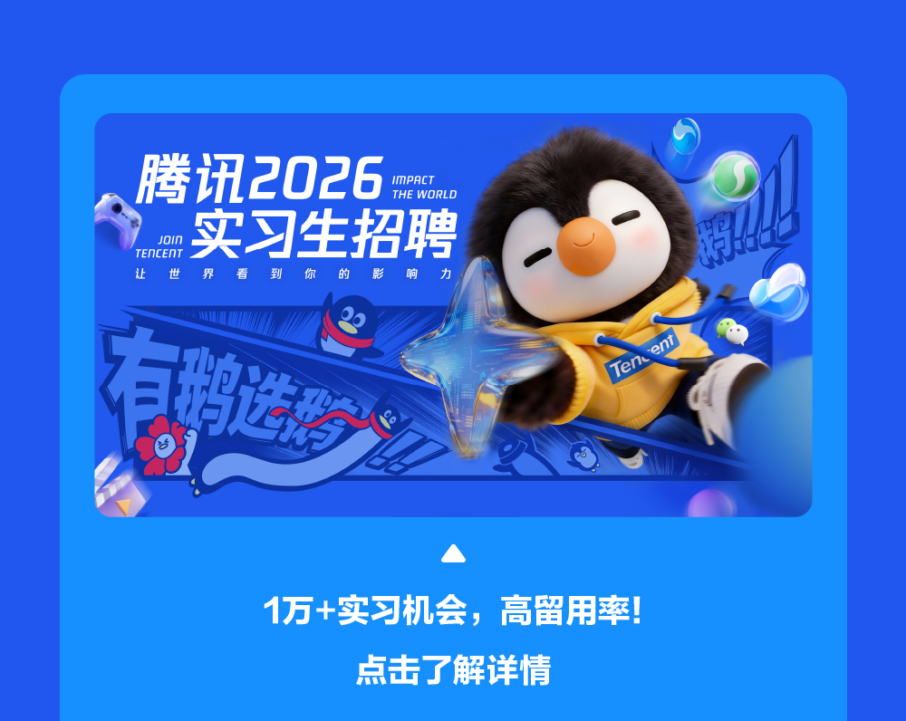 文章内容来源于公众号:腾讯招聘,点此可查看原文,内容版权归相关企业所有,本网站仅供交流学习。若涉及版权问题或存在侵权情况,请及时与我们联系,我们将第一时间进行删除处理。