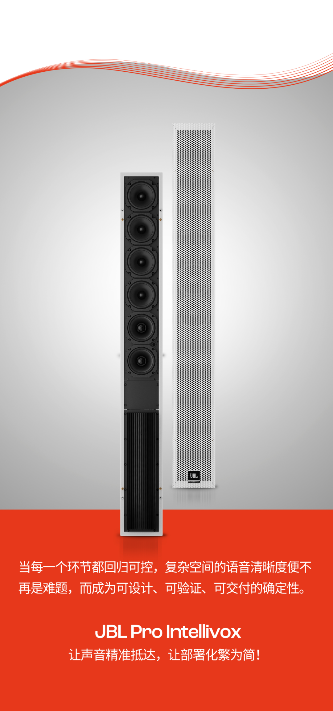 Intellivox让整支声柱成为一个高度聚焦、连续可控的声源,每个驱动单元独立供电与处理,声场不再是多个波束的简单叠加,而是形成贴合听众区形态的单一波阵面。