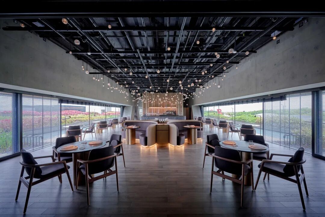 餐厅整体设计以中式庭园为主题,牵牛花玻璃吊灯充满特色。