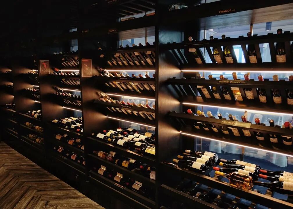 穿过走廊可见独立恒温酒屋,这里藏有上千瓶来自世界各地的酒品。