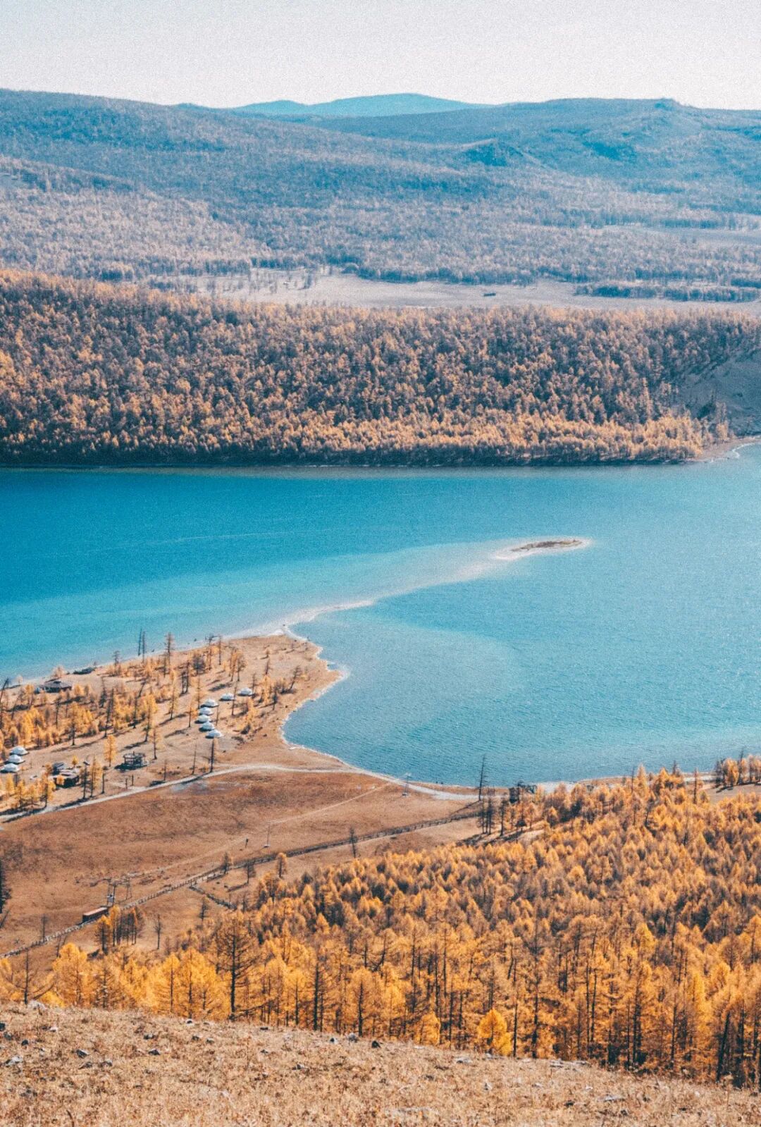 9月至10月则是另一种美。气温降到5到15摄氏度,但泰加林的落叶松变成金黄色,湖水更蓝,游客更少。喜欢摄影的人会偏爱这个季节。