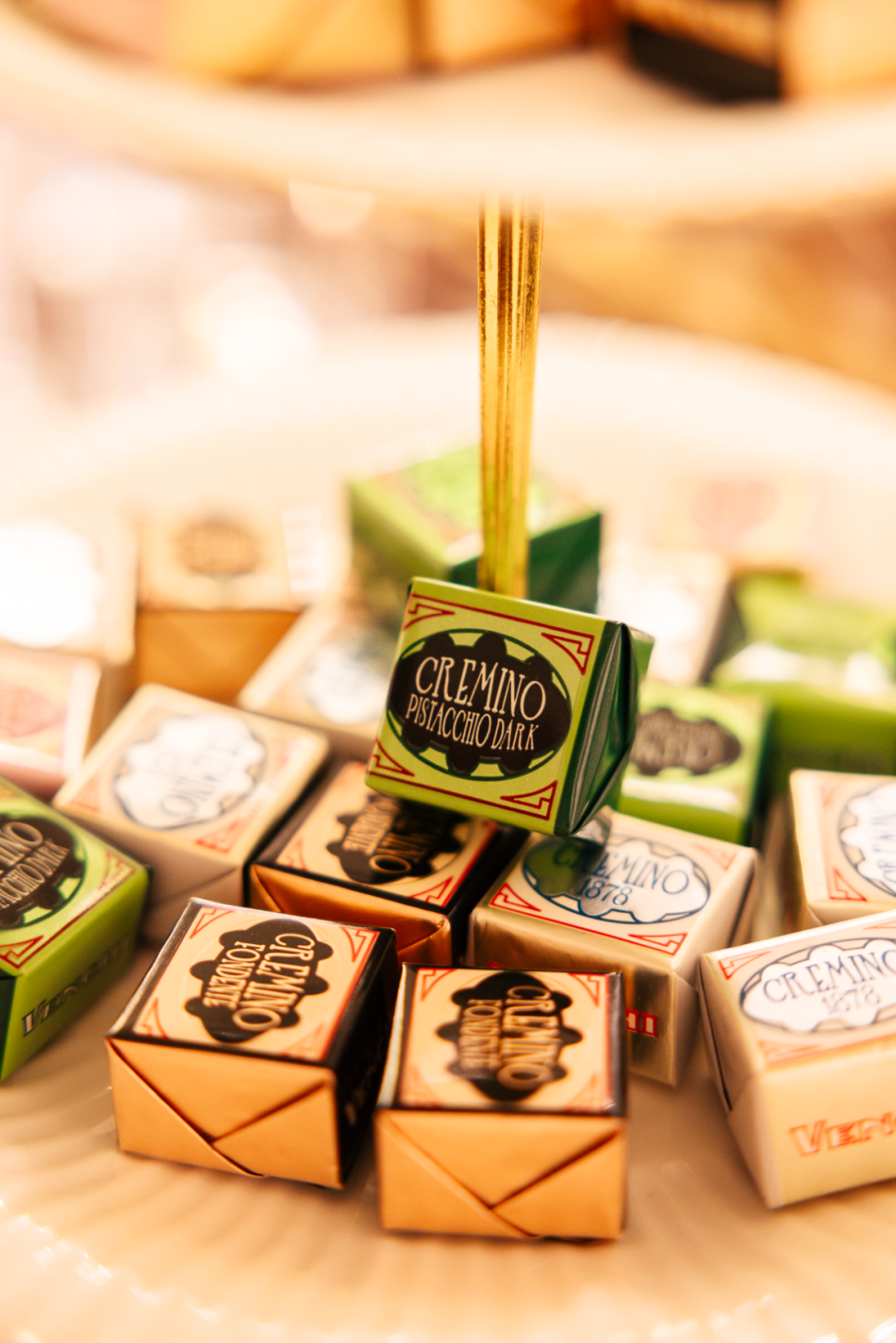Cremino开心果酱巧克力的灵魂,恰恰藏于这份精致有序的三层结构之中:丝滑牛奶巧温柔包覆白巧夹心,内含25%开心果酱,咸甜交织、绵密平衡的口感在舌尖逐层递进,默契相生。