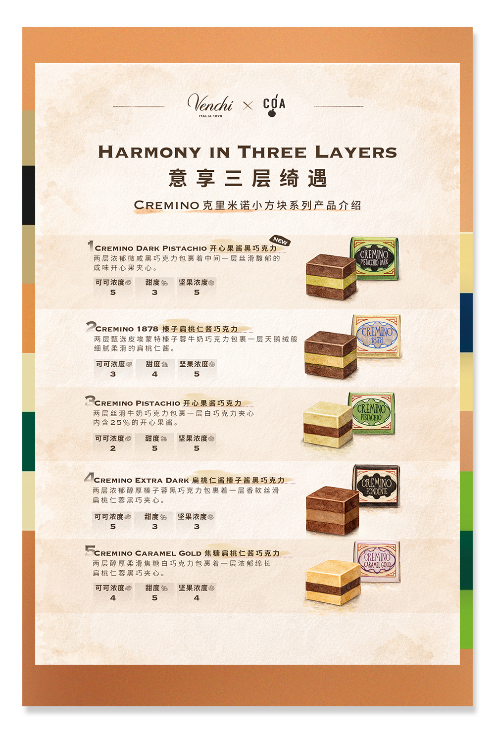 在Venchi与COA交织的风味秘境里,邂逅属于你的专属“绮”遇。循着Cremino层层递进的味觉肌理,直抵内心,捕获那份纯粹的愉悦瞬间。