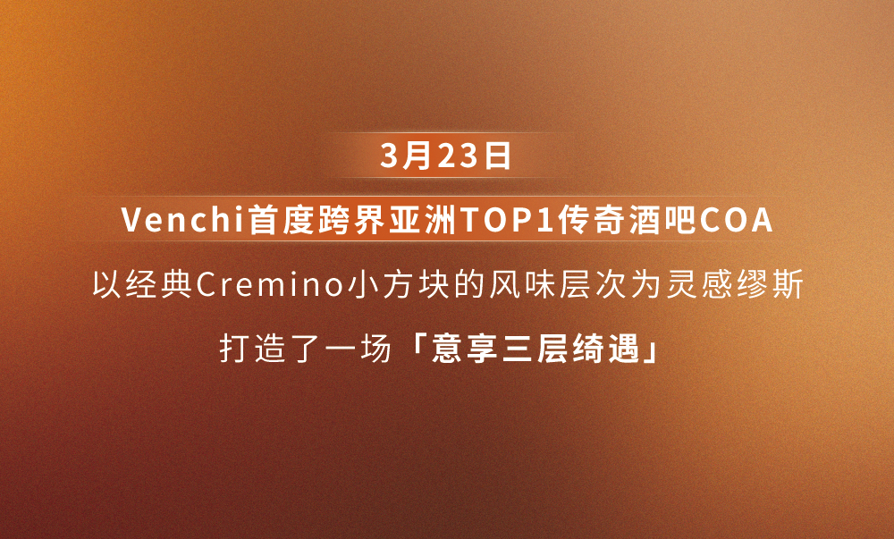 Venchi的百年经典之作Cremino,以独特的“三层结构”,筑就一座和谐平衡、柔软而有层次的味觉殿堂;而COA作为亚洲顶尖酒吧,同样擅长以多层空间为画布,通过光影、材质与风味的递进,构建出立体的感官世界。