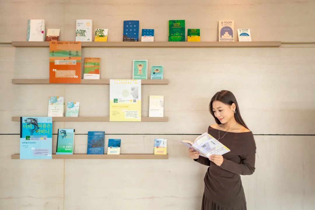 酒店在保留品牌经典的「FLO LAB 声音实验室」的基础上,特别在播客间门口增设开放式「声音图书馆」。各类精选读物与专属推荐海报整齐陈列,住客只需扫描播客二维码,即可实现随听随享。