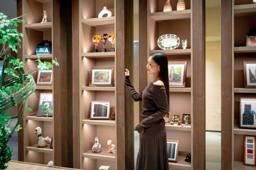 酒店还与旅行生活方式品牌ITO联合设立的「RAW Project」环保展示墙,展示的是由ITO生产余料通过创意设计转化而成的独具美感的作品。这些作品将 “再生之美” 融入旅・居日常,践行了友好、低碳的生活方式。旁边整面墙则陈列了许多颇具城市特色的趣味装饰,为酒店注入了满满的活力感受。