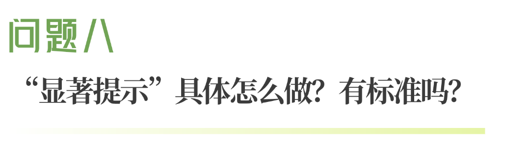 答:有非常详细的标准。《办法》第八条针对不同形式的信息,规定了具体的提示方式:
