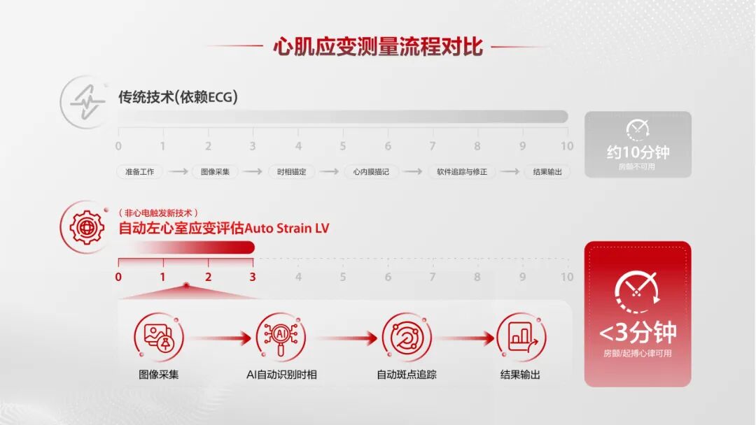 摆脱心电图束缚后的心肌应变测量技术最明显的变化就是“快”。应用新技术后,临床检查的操作时间从10分钟缩短至3分钟以内,显著地降低了技术门槛,让床旁、急诊、大规模筛查成为可能。