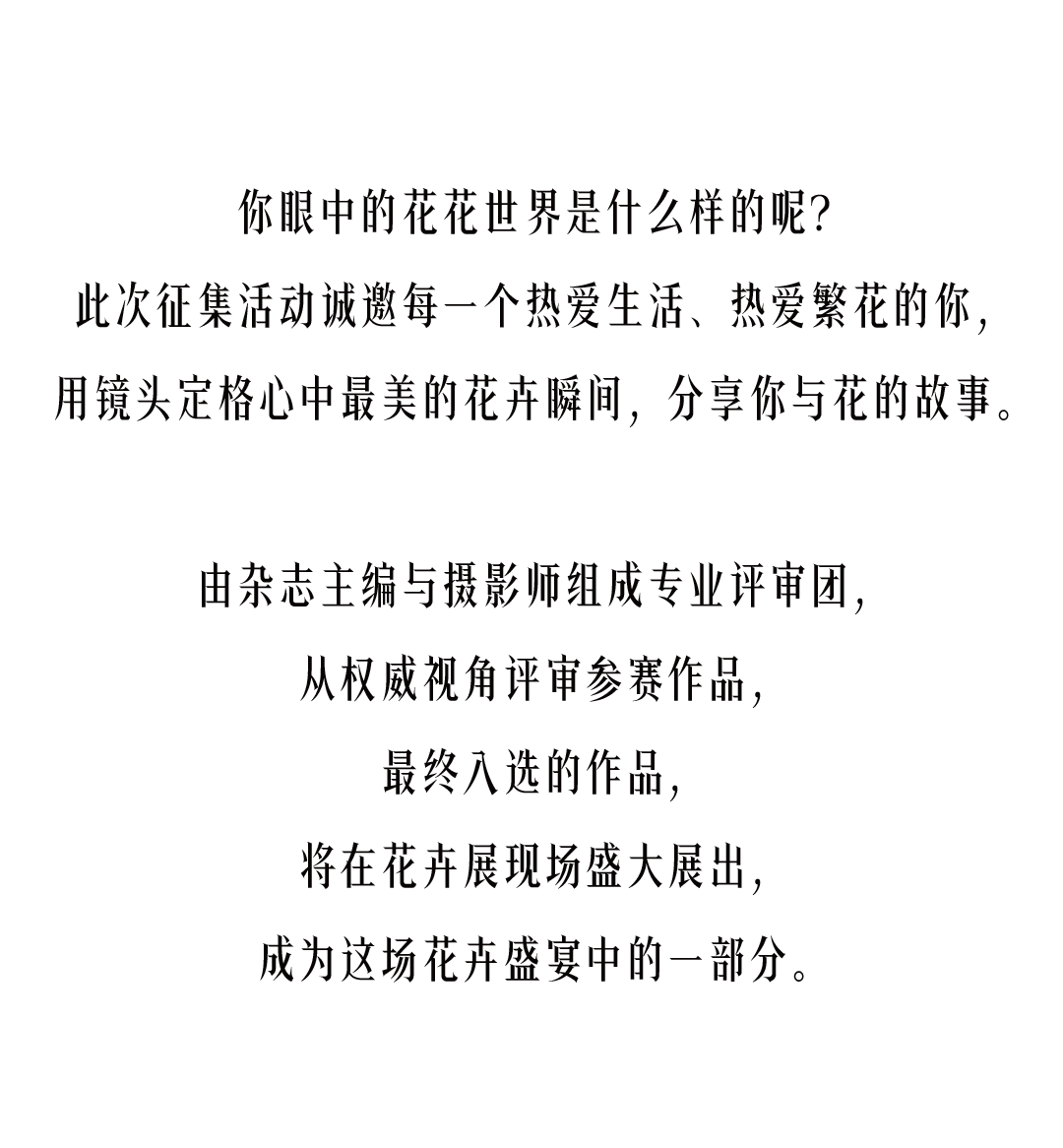 邀你用镜头捕捉与花相伴的动人瞬间,记录与花相遇的情绪与故事,不论是氛围感场景还是人像记录,我们期待看到你眼中有花作伴的温暖时刻。