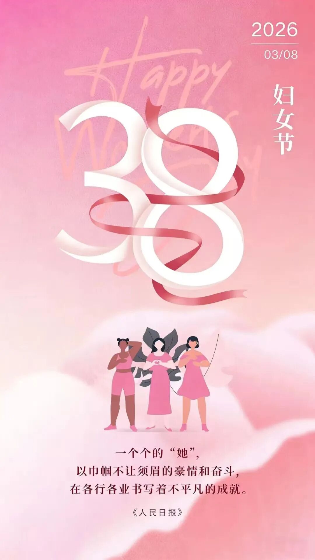 “三八”国际劳动妇女节,全称“联合国妇女权益和国际和平日”,旨在纪念女性为争取平等、尊严与权利所作出的不懈努力。